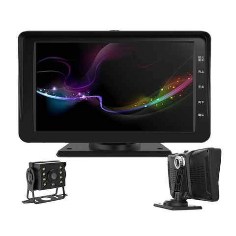 กล้องติดรถยนต์อเนกประสงค์ขนาด7นิ้วพร้อมกล้องมองกลางคืนและกล้องถอยหลังระบบบันทึกสองหน้าและหลังสำหรับ RVs รถบรรทุกและรถตู้
